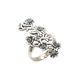 2025ลดกระหน่ำแหวนแต่งงานลายดอกไม้เงินสเตอร์ลิงประดับพลอยสีเทอร์ควอยซ์ธรรมชาติหินก้อนใหญ่สำหรับ
