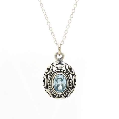 สินค้าขายดีที่น่าทึ่งที่สุดของปีรูปไข่พลอยท็อปาสสีฟ้าสร้อยคอประดับเพชรในเงินแท้ 925