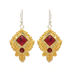 ต่างหูเงิน925สเตอร์ลิงทำด้วยมือสองโทนสีรุ้งแบบอินเดีย