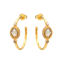ต่างหูห่วง25มม. ประดับเพชรเม็ดกลมสวยงามชุบทอง925เงินสเตอร์ลิงมีพร้อมจำหน่าย