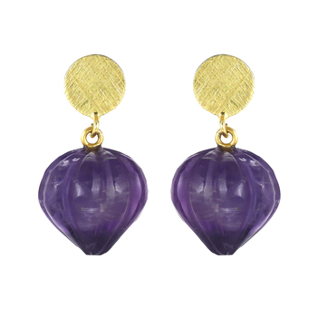 100% ทองคำธรรมชาติชุบ925เงินสเตอร์ลิงแกะสลักอเมทิสต์ต่างหูเครื่องประดับแฟชั่นของขวัญสำหรับผู้หญิง